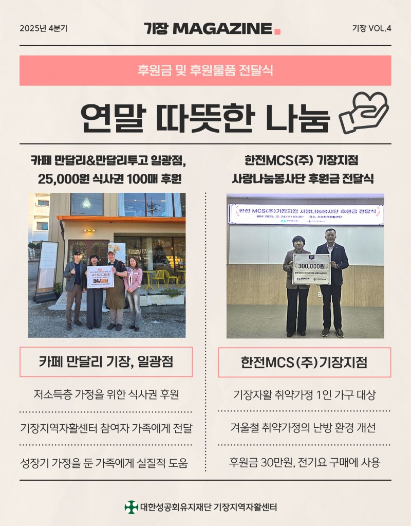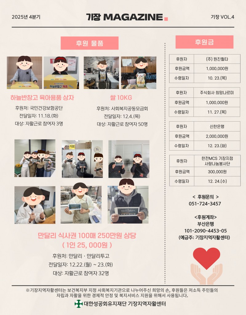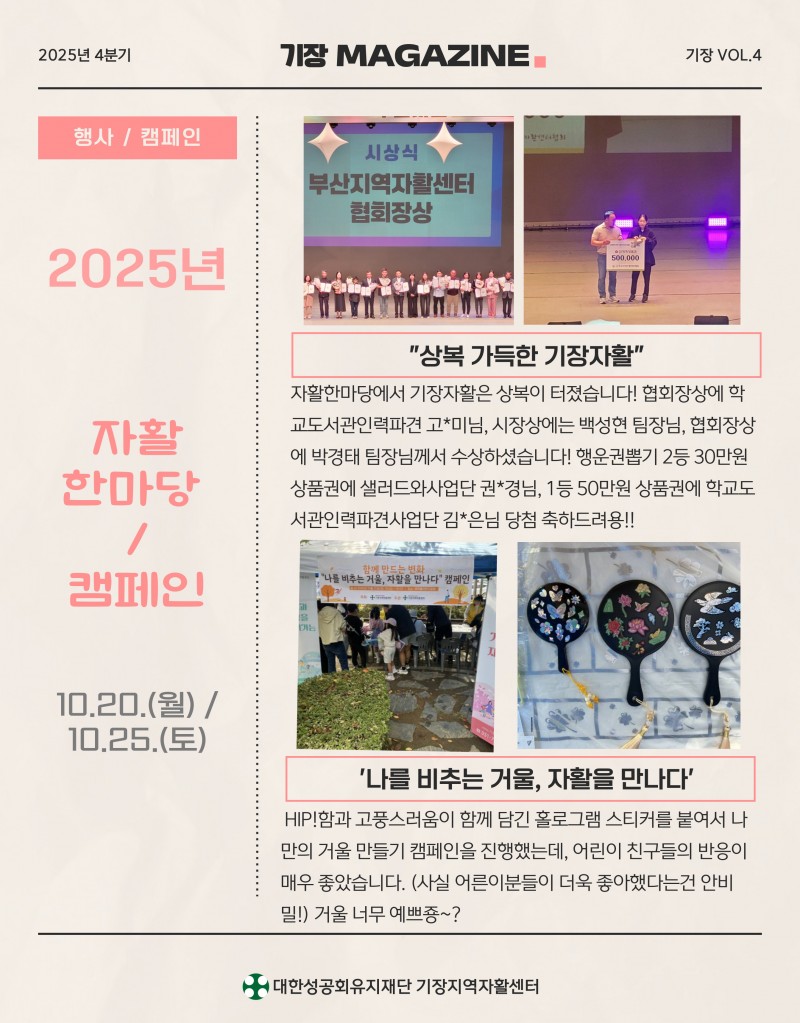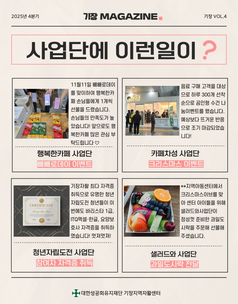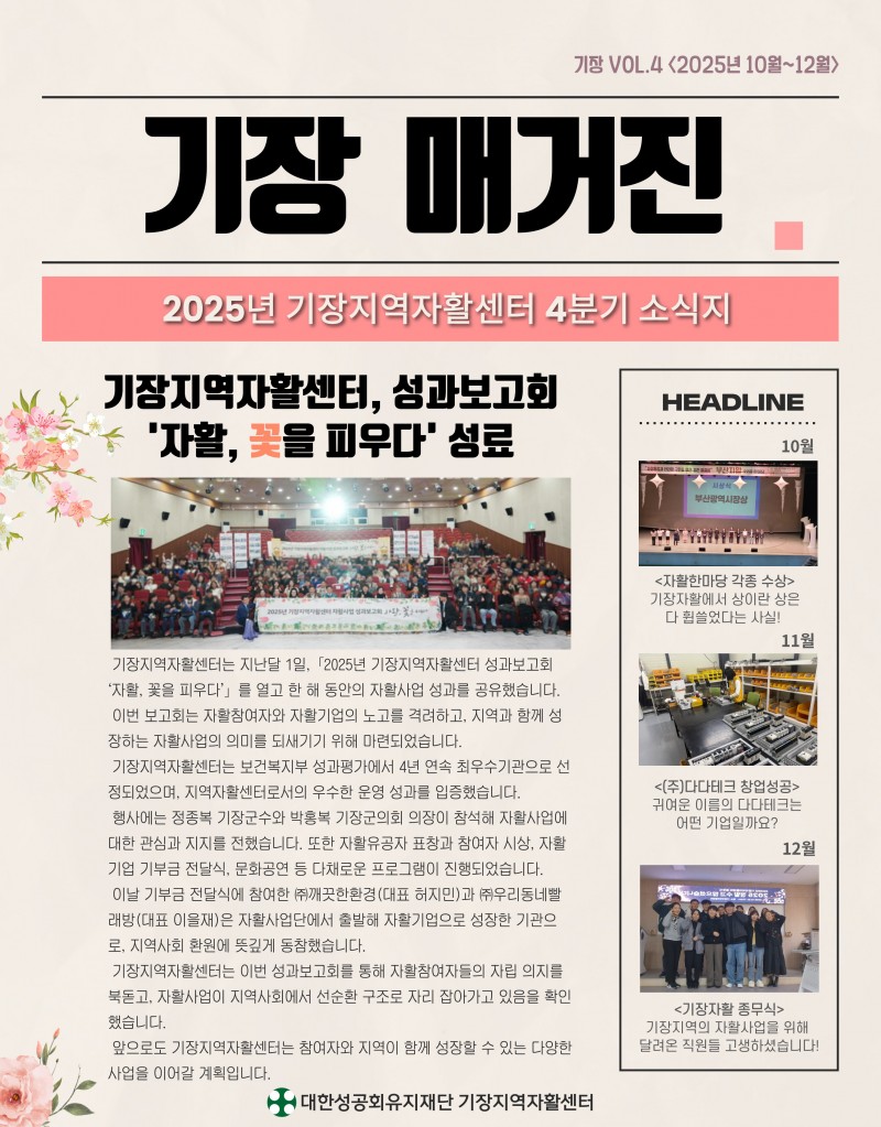 2025년도 4분기 기장지역자활센터 웹진 페이지 정보 작성자 최고관리자 작성일26-01-09 17:38 조회478회 관련링크 https://stib.ee/cdsK 188회 연결 이전글 다음글 목록 본문 이전글 다음글 목록