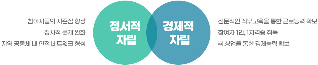 - 개인별 역량 강화와 맞춤형 취·창업 교육을 통한 경제적 자립 기반 마련